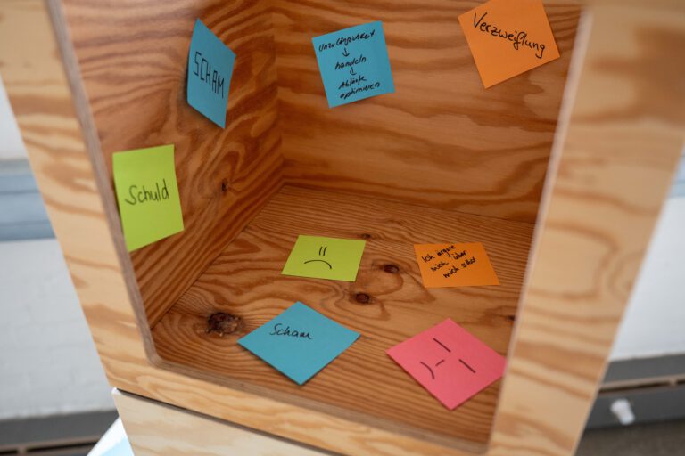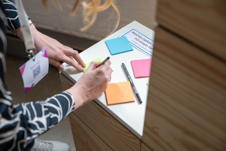 Die aufgebauten Exponate boten hierzu ergänzend Informations- und Methodenhäppchen, zwischendurch auch Anlass zum Schmunzeln oder die Möglichkeit sich mit einem Klebezettel zu verewigen. Gern genutzt wurde nebenan im „Stillen Kämmerlein“ die 4transfer-Fehler-Verschwinde-Maschine, in der die Teilnehmenden einen unliebsamen Fehltritt für immer dem Aktenvernichter überlassen konnten.